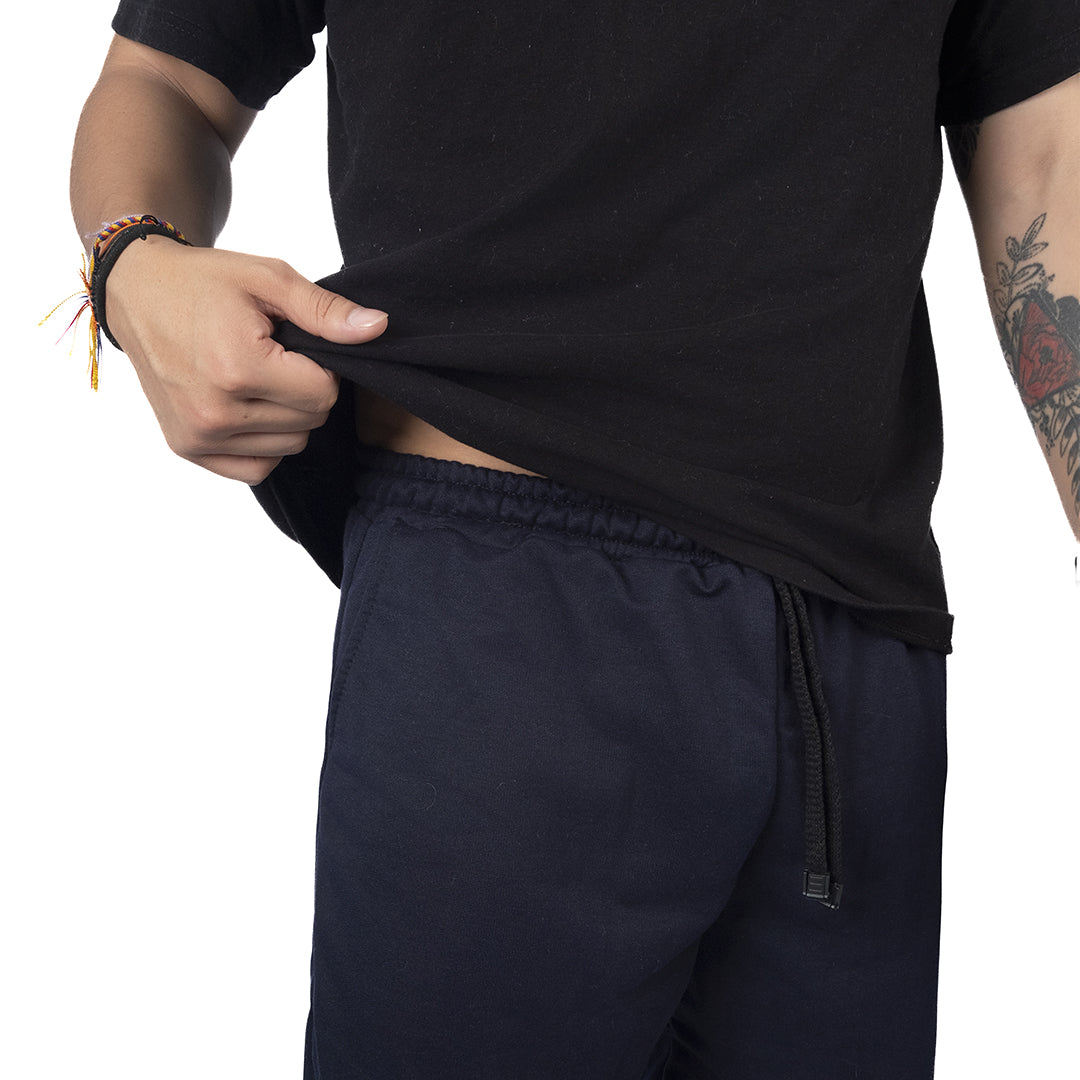 Cuenta con pretina elástica con cordón ajustable y bolsillos laterales funcionales para mayor practicidad. Su confección sencilla garantiza libertad de movimiento y un ajuste relajado durante todo el día.