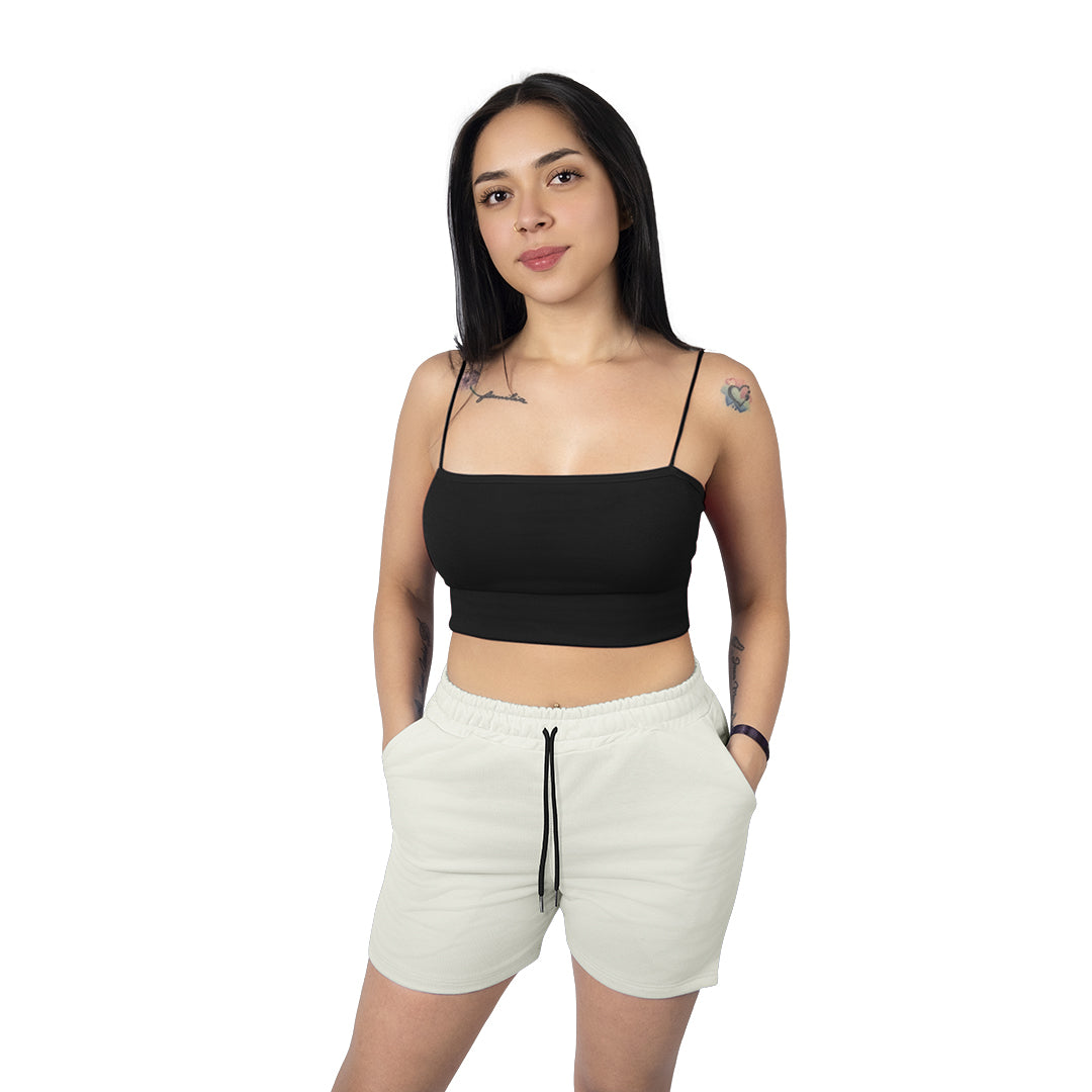 Pantaloneta básica para mujer elaborada en algodón suave, ideal para el uso diario. Su diseño cómodo y ligero la hace perfecta para estar en casa, salir a la calle o hacer deporte de manera casual.