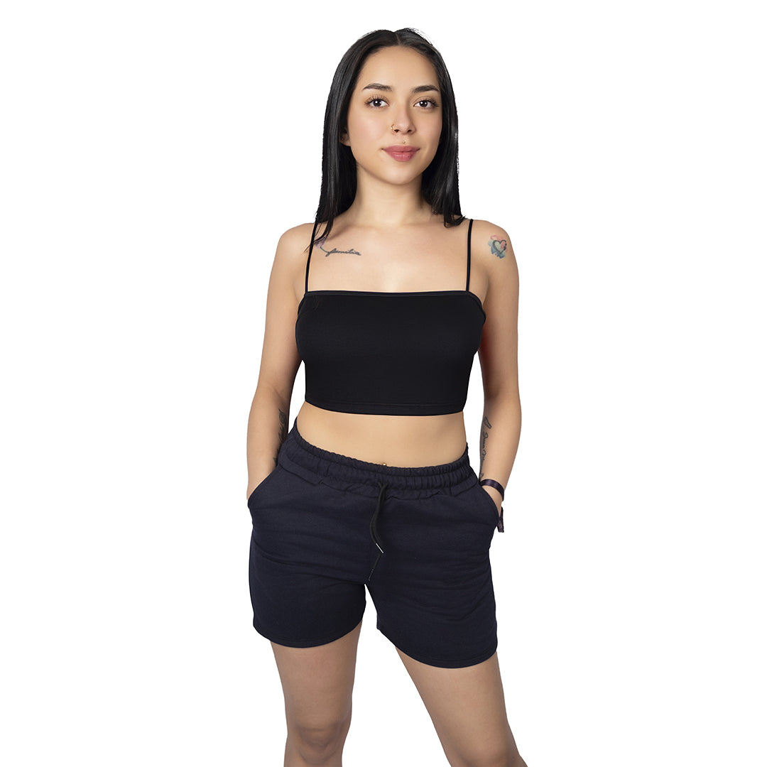 Pantaloneta básica para mujer elaborada en algodón suave, ideal para el uso diario. Su diseño cómodo y ligero la hace perfecta para estar en casa, salir a la calle o hacer deporte de manera casual.
