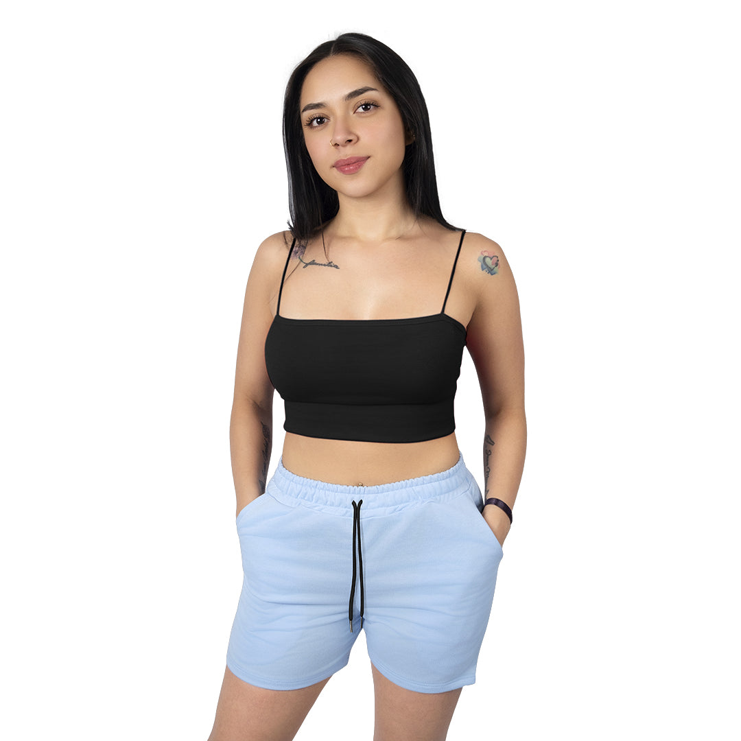 Pantaloneta básica para mujer elaborada en algodón suave, ideal para el uso diario. Su diseño cómodo y ligero la hace perfecta para estar en casa, salir a la calle o hacer deporte de manera casual.