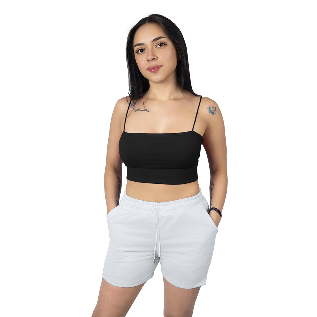 Pantaloneta básica para mujer elaborada en algodón suave, ideal para el uso diario. Su diseño cómodo y ligero la hace perfecta para estar en casa, salir a la calle o hacer deporte de manera casual.