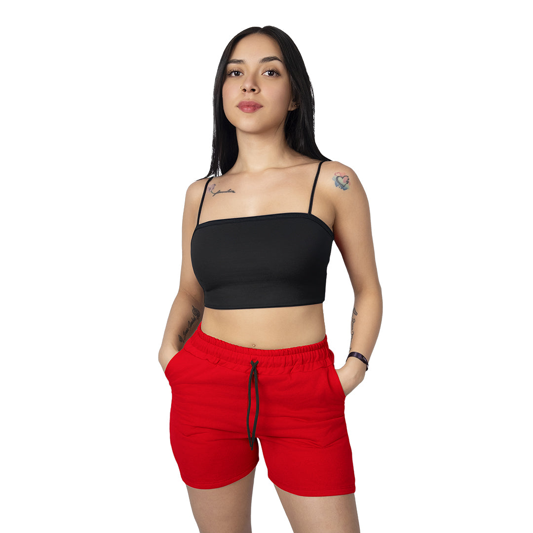 Pantaloneta básica para mujer elaborada en algodón suave, ideal para el uso diario. Su diseño cómodo y ligero la hace perfecta para estar en casa, salir a la calle o hacer deporte de manera casual.